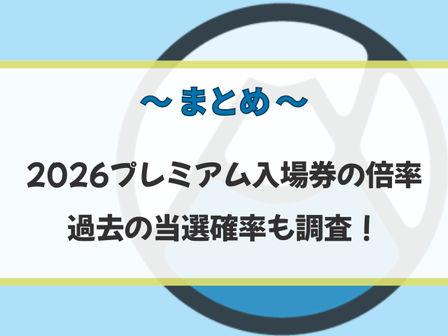 2026年もこの仕組み自体が大きく変わらないと仮定すると、限られた人数枠に対して多くの応募が集まる構図は続き、プレミアム入場券の倍率は自然と高くなると考えられます。