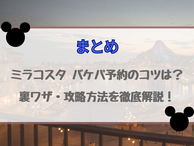 この記事では、初めてでも迷わず選べるように、ミラコスタのバケパ予約の攻略方法を丁寧に解説します。