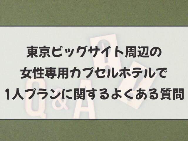 - 東京ビッグサイト周辺の女性専用カプセルホテルの1人プランに関するよくある質問