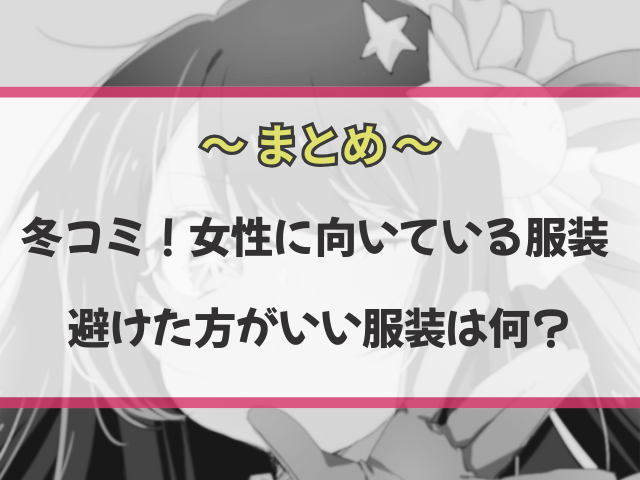 この記事では、冬コミで女性に向いている服装避けた方がいい服装を具体的に紹介してきました。